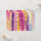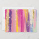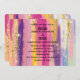 Convite de casamento com um design de fundo abstrato. Listras vibrantes em cores arrojadas e pastéis. Pinks, blues, púrpura e cores amarelas combinadas com dourado esparso brilhante em camadas superiores.