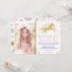Convite de unicórnio mágico do arco-íris com unicórnio dourado brilhante com confete rosa e roxo e estrelas douradas - Adicione um pouco de capricho à celebração especial do seu pequeno!