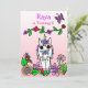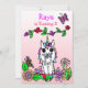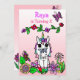 Bonito estilo conto de fadas brancas unicórnio Convites de aniversário com estilo arte folk esboçavam flores e borboletas. Púrpura, rosa, vermelha, verde limão e todos os tipos de cores brilhantes bonito! Bonito fada rosa e tema unicórnio.