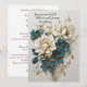 Um convite de casamento com um tema de design floral elevado em turquesa, creme e ouro. (Não se esqueça de mudar o texto também no sentido inverso). Adicione seu texto personalizado a este design, usando as caixas "Editar este modelo design" no lado direito do item, ou clique no botão "Personalizar" para organizar o texto, alterar as fontes e cores e também para adicionar informações ou imagens adicionais a este design. Se você precisar de algum item de coordenação (cartões de agradecimento, etc.), entre em contato comigo para obter um pedido personalizado. — Como em todos os meus produtos, para um pedido personalizado, não coloque essa mercadoria no seu carrinho. Em vez disso, clique no botão "vendedor de contatos" e envie-me um e-mail com sua solicitação. Um link para o seu produto será enviado por e-mail assim que o item estiver disponível. Você pode usar esse link para fazer seu pedido. Por favor, aguarde até 48 horas.