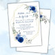 Marinho azul-cinzenta, convites de aniversário florais surpresa com moldura de ouro para ela em bonito flores azuis.