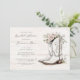 Um chá de panela rústico de serra aquática com botas florais de cowgirl, contra um fundo de madeira branca. Tire suas botas favoritas e se prepare para um encontro memorável cheio de risos, amor e celebração! Peça seus convites em impressão, downloads digitais ou ambos!