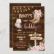 Convites Raízes Florais de Fundo de Madeira Rústica e Borra
