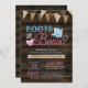 As botas russas e o gênero dos arcos revelam convites de festas. Um único país com o tema gênero revela o convite, com um banner de bunting, arco rosa e um par de botas de cowboy azuis sobre um fundo de madeira.