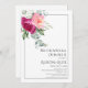 Este convite de janto de ensaio de casamento apresenta galhos elegantes de eucalipto decorados com lindas rosas cor-de-rosa. O arranjo floral refinado destaca folhas verdes e palha macia e flores cor-de-rosa, colocadas criativamente no canto superior esquerdo. O texto é apresentado em tipografia quic, melhorando a aparência geral, enquanto uma fina borda negra enquadra o design, dando a este encantador um toque clássico.