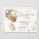 Um convite elegante para festas de férias com galhos de pinheiros, bolas de Natal e flocos de neve em fundo branco. Estes belos convites de Natal são perfeitos para convites de festas de janto de Natal, convites para troca de presentes de Natal, angariadores de fundos de Natal, convites para bolas de férias e outros eventos realizados durante o mês de dezembro. Use apenas os campos modelo para adicionar suas próprias informações de evento.