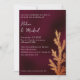 Este convite de casamento elegante e romântico apresenta um tema de inverno simples e moderno. O plano de fundo apresenta um padrão de textura de folha de alumínio escuro. Uma ramificação de pínus é colocada à direita e apresenta um gradiente de folha de cobre.