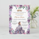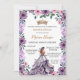 Celebre a transição para os quinze anos com o nosso requintado Convite de Quinceañera 'Ramos Roxos e Borboletas'. Este design encantador apresenta flores violetas vibrantes, uma quinceañera radiante em um vestido elegante e detalhes delicados de borboletas. Capture a essência desta celebração marcante com um toque de elegância floral e a graça das borboletas a voar