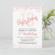 Convite de aniversário giro com faux rosa gold glitter confetti e moderna tipografia do script de caligrafia de pincel manuscrito. ASSISTÊNCIA: para obter ajuda com a modificação ou personalização do design, alteração de cor, transferência do design para outro produto ou você gostaria de coordenar itens, entre em contato com o designer ANTES DE ENCOMENDAR através da guia MENSAGEM de bate-papo Zazzle ou envie um email para makeitaboutyoustore@gmail.com.