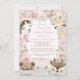 Garota dirige por chá de fraldas convidada com bebês bonitinhos vestindo máscaras em um fundo cor-de-água cor rosa e fundo de faixa. Este belo drive de animais por convite de chá de fraldas é facilmente personalizado para o seu evento simplesmente adicionando os detalhes do seu evento.