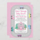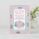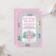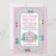 Dirigir através de convites para bebês com carros bonitos e casa em um fundo cor-de-rosa. Esta unidade por chá de fraldas é facilmente personalizada com os detalhes do evento.
