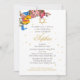 Um convite bonito para a cerimônia de nomeação hebraica de rosa floral. O design tem flores nativas com borboletas e uma abelha celebrando as flores. O texto dourado que é facilmente alterado para suas informações. Escolha entre uma faixa de tipos de papel.