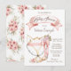 Bebê de raposa-menina convida com adorável raposa-bebê em um bonito fundo floral rosa. Esses bonitos convites para chuveiros de bebês de raposa são facilmente personalizados para seu evento simplesmente adicionando seus detalhes.