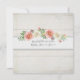 Paleta colorida de tendências, mudas, etéreas, de cor rosada cortada, rosa-pincel profundo e pinks-rosa, aliada a branco macio, carvão, verduras azuis e cinzas. Linhas simples, limpas, de rosa floral branco e roxo e de pano de fundo de madeira na frente e cinza mole, com uma banda de textura de linho branco e uma borda complementar de flores no verso, tem um lugar para a sua RSVP e informações de registro. Audrey Jeanne Roberts, todos os direitos reservados.