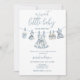 Chamada de Chá de fraldas de roupas de bebê da Chinoiserie Azul. Este convite para o chá de fraldas apresenta roupas de bebê no tema Toile Chinoiserie, Urso de Teddy, e um toile de jouy Chinoiserie. este é o convite perfeito para a sua moda e chá de fraldas elegante.