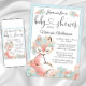 Convites Rapariga Fox Rosa Teto Dourado Chá de fraldas de A