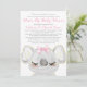 Faça convites para um chuveiro de bebês com uma adorável menina coala com arco rosa giro vestindo uma máscara em um bonito plano de fundo rosa. Esta unidade por chá de fraldas é facilmente personalizada com os detalhes do evento. Todo o texto pode ser alterado.