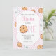leite e festas de aniversário de biscoitos convidam a cor-de-rosa com biscoitos de chocolate e garrafas de leite e canudos cor-de-rosa. Primeiro Convite de Aniversário.