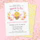 Celebre a mãe para estar com este convite de chá de fraldas temático da abelha divertida. Ele apresenta uma ilustração adorável de abelha rosa e amarela com uma borda floral. Bonita para um chá de menina. Fácil de personalizar com suas informações. Projetado para você pelo Blackberry Boulevard.