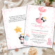 Este adorável convite para chás de fraldas mostra um urso panda menina sendo voado por balões com roteiro elegante e texto moderno para seus detalhes. O painel traseiro possui um balão e texto para uma solicitação de livro, ou pode ser excluído para uma aparência limpa. Fácil de personalizar clicando em "Personalizar".