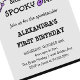 Rapariga Skull Spooky one Halloween primeiro aniversario Invitation : Este primeiro aniversario de Halloween convida em roxo e cinzas com esses crânios bonitos (esqueleto), fantasma, morcego, teias de aranha com o texto " É meu corpo / bode dia na parte de trás, é para garotinha (crianças / crianças). (ex: Ela é Spooky. Junte-se a nós para o primeiro aniversário de Alexandra, no dia XXXXX de outubro XX... Este primeiro convite de aniversário de halloween é excelente de aniversário assustador. Você pode personalizar estes convites de festa de aniversário feminina de halloween com todas as suas informações. Perfeito para convites de primeiro aniversario de halloween, convites de primeiro aniversário de halloween, festa de primeiro aniversario, primeiro aniversário de halloween, festa de aniversário de menina, aniversário de outubro, primeiro aniversario de menina... HALLOWEEN THEME ( os convites de um aniversário assustadores, um aniversário assustador )