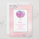 Convite de aniversário temático da garota feito em um fundo rosa com gráficos de elementos brilhantes. Uma área de texto branco enquadrada pela gliteria prateada é decorada com balões sujos, no topo. Excelente para qualquer menina. Personalize todos os campos de texto para seu dia especial.