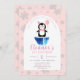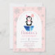 Convites Raparigas Cute Penguin Winter Pink Aniversário