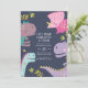Convites Raparigas Dinossauras Roar Aniversário Roxo