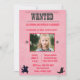 convites de festas de aniversários temáticos do excelente Cowboy para sua vaqueira favorita. Este design de vaqueiro rosa tem uma poster com foto de menina, um vaqueiro em um cavalo com um lasso e uma bota de vaqueiro. Use nossa modelo fácil para personalizar com suas informações.