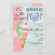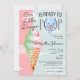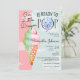 Escolha este lindo Dragão Bebê Pronto para Pop Tint & Pink Sorvete Chá de fraldas Cartão de Convite com uma ilustração aquarela de um cone sorvete e um adorável dragão bebê. O texto diz "Nosso Dragão Pequeno está Pronto para POP." Um doce design de verão para uma mamãe esperando um bebê em 2024, Ano do Dragão! Personalize este modelo bonitinho e solicite seus convites para o chá de bebê agora.