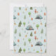 Este lindo e moderno convite para o chá de fraldas do bebê, design de anúncio de bebê, apresenta um pai e um bebê urso. Há também um padrão de acampamento azul no reverso, com tendas, ursos, árvores florestais e uma fogueira, e espaço para você adicionar o nome da mãe e toda a informação que você precisa compartilhar para sua festa na floresta.