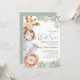 Convide os entes queridos para comemorar o seu pequeno aventureiro com o Convite para Chás de fraldas de Animais Safari! Apresentando adoráveis animais da selva como leões, girafas e elefantes cercados por um verde-luxuoso, este design é perfeito para um safari ou chá com tema-da-selva. Ilustrações lúdicas e fontes elegantes criam um convite charmoso e na moda que dá o tom para uma celebração alegre. Prepare-se para um dia de amor, riso e entusiasmo enquanto se prepara para receber o seu filho!