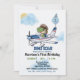 Rapazes, um avião Viagem azul e bonito com um dinossauro como piloto. Convite para crianças divertidas, primeiro aniversario. Personalize-o com o nome e os detalhes da festa de aniversário do seu filho. Copyright Soar em Style Design LLC.