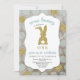 Um convite rústico maravilhosamente azul e dourado para um Bunny que está virando um!