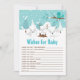 Este doce e divertido pedido de cartão de bebê apresenta uma adorável família de raposa-ártico num cenário de inverno maravilhoso com árvores com capas de neve e um pássaro azul num galho com holly. Ao fundo está um céu verde azul teal e flocos de neve caindo. O texto combina fontes decorativas e sans serif para um aspecto na moda e moderno. Isto é perfeito para um chá de fraldas temático de Natal ou inverno.