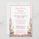 Uma doce raposa bebê cercada por flores rosa, púrpura e azuis, ilustração aquática, convites para o chá de bebê de menina.