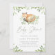 A natureza elegante inspirou convites para chuveiros de bebês todos-em-um a eliminar a necessidade de gabinetes extras! Design apresenta uma fox aquosa enrolada num leito de folhas de eucalipto e folhagem verde. Personalize com o seu chá temático da floresta por baixo e adicione detalhes adicionais ao verso, incluindo campos de texto personalizados para um arquivo de fralda, registro, solicitação de livro e um código QR.