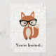 Adorável fox fox cartoon com óculos de hipster no rosto. Uma raposa-de-laranja-avermelhada e divertida sentada com uma cauda maleável, aprendendo e lendo com seus óculos.