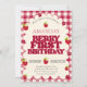 Celebrate your little berry’s sweetest milestone with our Raspberry Berry First 1st Birthday Party Invitation! Featuring an adorable smiling raspberry illustration with soft watercolor tones, lush green leaves, and a dainty flower accent, this invite is bursting with charm. Perfect for a berry-themed or garden-inspired first birthday, it sets the stage for a fun, fruity, and unforgettable celebration.