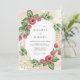 This design features a lush arrangement of vibrant red raspberries nestled among deep green leaves and delicate gold botanical line art. A soft pink watercolor wash creates a romantic backdrop for the fresh, fruity theme. Perfect for a warm summer event, the artwork combines natural elements with a touch of elegant shimmer.