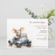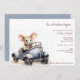 Na moda e divertida, este lindo rato de aquarela guiando um chuveiro de bebê de carro azul são perfeitos para qualquer chá de fraldas. O design apresenta um mouse de aquarela pintado com uma mão bonita que está sorrindo enquanto se senta em um carro azul e um texto que pode ser personalizado para o ajustado das necessidades de planejamento do seu partido. A parte traseira apresenta um padrão de bolinhas sobre uma cor de fundo alterável.