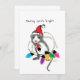Cinzas bonitas e camundongos brancos de Natal em Santa hat espíritos fazeres brilhantes envoltos em luzes de férias, todas as cores do arco-íris. Arte de Margaret Loftin Whiting.