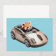 Um mouse futurístico de computador projetado para se parecer com um carro pequeno. No assento do condutor está um adorável panda vermelho, dirigindo o mouse como se fosse um mini veículo. O panda vermelho tem uma expressão curiosa em seu rosto. Imagem gerada por IA.