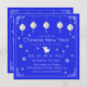 Celebre o Ano Novo Lunar! Design apresenta uma fronteira branca estilizada em chinês, lanternas origami, estrelas e um rato. As cores sortudas para 2020 são brancas e azuis. A cor de fundo pode ser alterada.