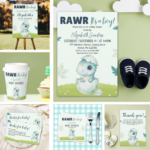 Convites Rawr It’s a Boy Dinosaur Baby Shower Invitation