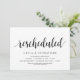 Altere o cartão de data. Este é o cartão de convite de Festa de casamento Reprogramado (adiado/adiado) (Novo plano), na fonte mínima simples e moderna design, em preto.