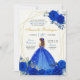 Royal Blue Mexicano Princesa Quinceañera Invitation, Blue Rosa Floral, Dourada Crown Quince Tiara Mexicana 16º Aniversário, Arca Geométrica, Doce 16º Aniversário da Quinceanera