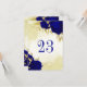 Belo cartão de número da mesa de casamento com flores azuis reais e folhas de ouro. São simulados os detalhes do brilho dourado. PARA MAIS PRODUTOS CORRESPONDENTES, consulte a coleção acima ou entre em contato comigo