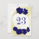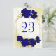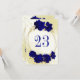 Belo cartão de número da mesa de casamento com flores azuis reais e folhas de ouro. São simulados os detalhes do brilho dourado. PARA MAIS PRODUTOS CORRESPONDENTES, consulte a coleção acima ou entre em contato comigo