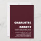 Convide amigos e familiares com este convite de recepção de casamento minimalista e sofisticado em borgonha com texto branco, com uma foto dos noivos no verso. Para melhores resultados ao ajustar a imagem escolhida para o verso do convite, corte-a para uma proporção de 5 x 7.